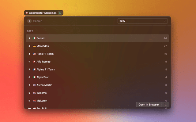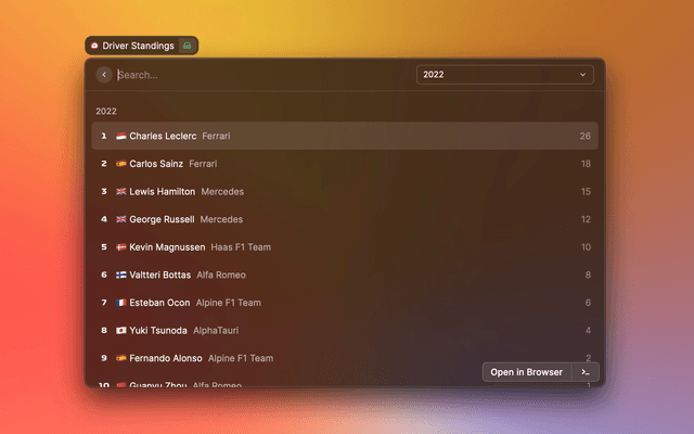 List the current standings in Formula 1