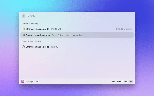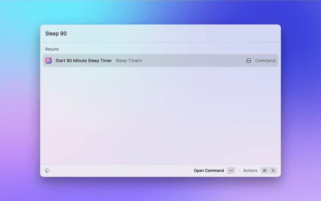This is a lightweight extension allowing you to start and stop a single sleep timer. It works directly in Raycast, no external apps or dependencies required. Now available in the Raycast Store!