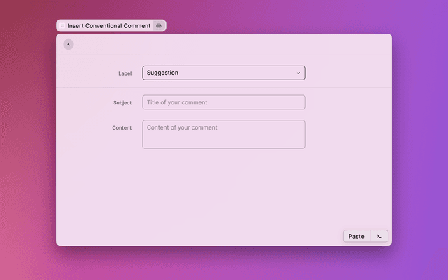 Paste conventional comment into foremost application using Raycast !