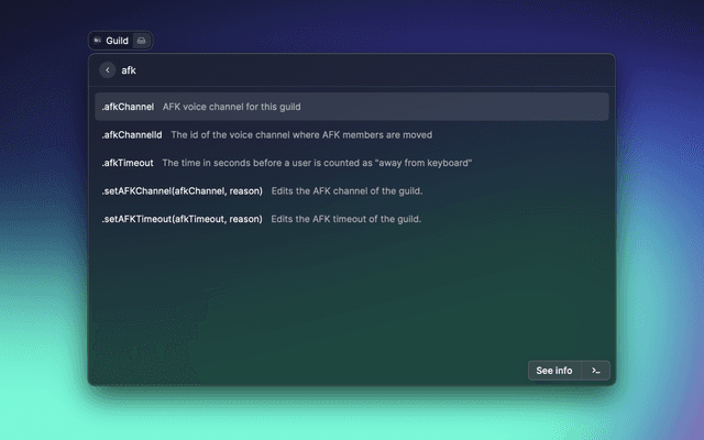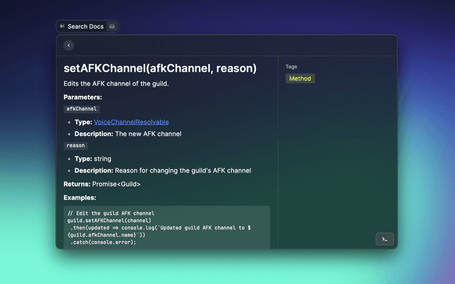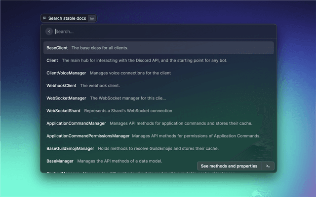 Quickly search through discord.js documentation.